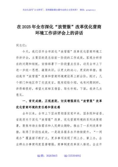 / 在2025年全市深化“放管服”改革优化营商环境工作讲评会上的讲话