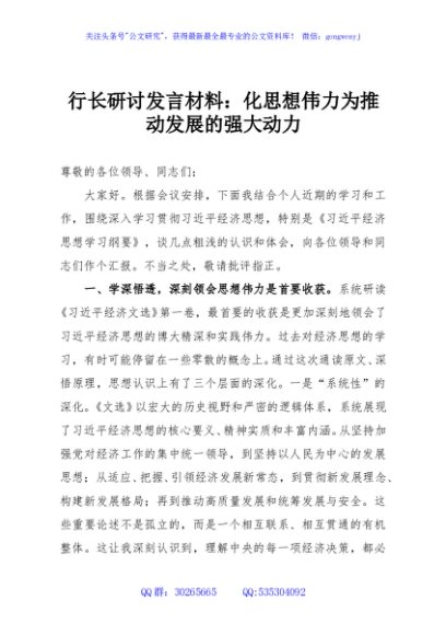 行长研讨发言材料:化思想伟力为推动发展的强大动力