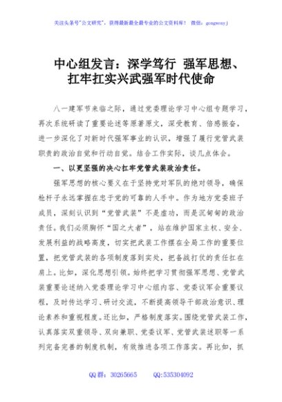 / 中心组发言:深学笃行 强军思想、扛牢扛实兴武强军时代使命