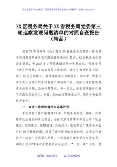 / XX区税务局关于XX省税务局党委第三轮巡察发现问题清单的对照自查报告(精品)
