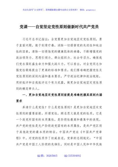 / 党课——自觉坚定党性原则做新时代共产党员