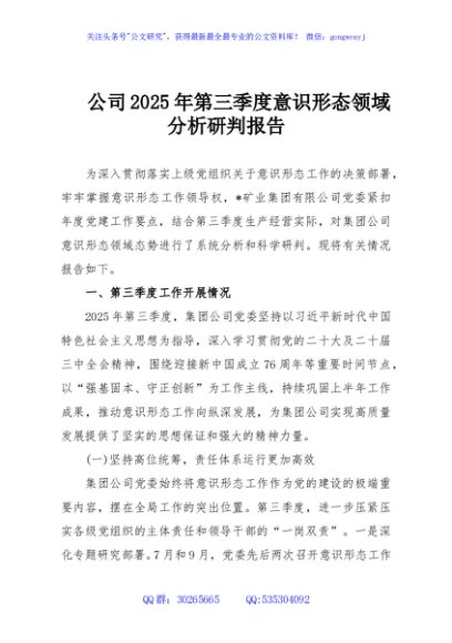 / 公司2025年第三季度意识形态领域分析研判报告