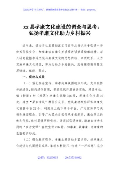 / xx县孝廉文化建设的调查与思考: 弘扬孝廉文化助力乡村振兴