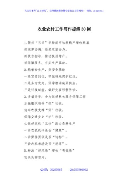/ 农业农村工作写作提纲30例