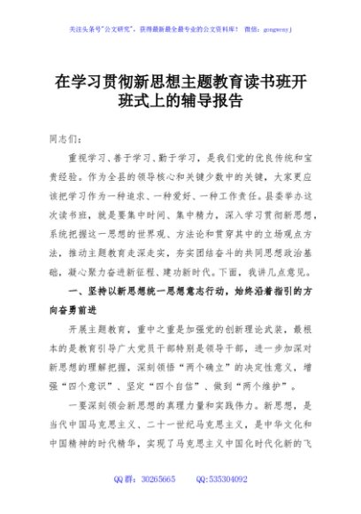 / 在学习贯彻新思想主题教育读书班开班式上的辅导报告