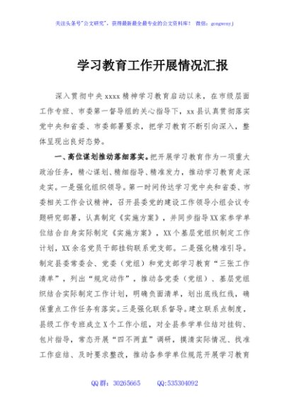/ 学习教育工作开展情况汇报