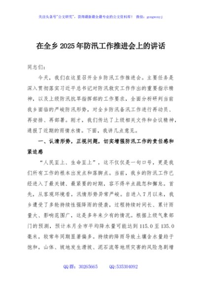 / 在全乡2025年防汛工作推进会上的讲话