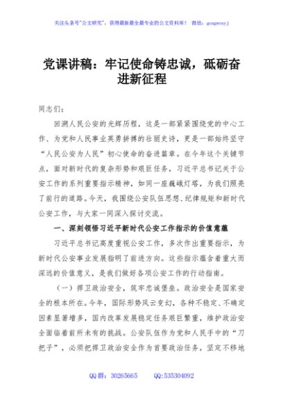 / 党课讲稿:牢记使命铸忠诚,砥砺奋进新征程
