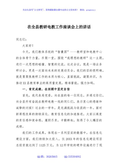 / 在全县教研电教工作座谈会上的讲话