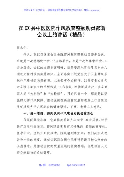 / 在XX县中医医院作风教育整顿动员部署会议上的讲话(精品)