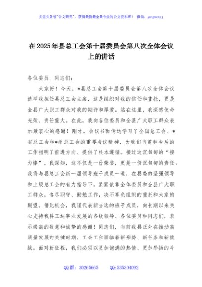 / 在2025年县总工会第十届委员会第八次全体会议上的讲话