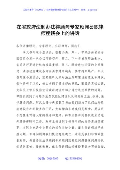 未生成预览图,长按二维码添加 在省政府法制办法律顾问专家顾问公职律师座谈会上的讲话 - 公文研究