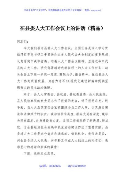 未生成预览图,长按二维码添加 在县委人大工作会议上的讲话(精品) - 公文研究