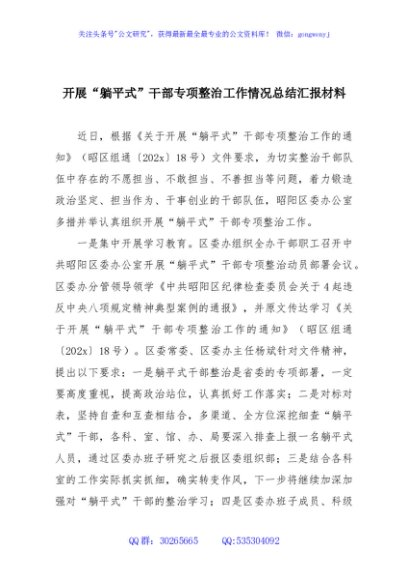 / 开展“躺平式”干部专项整治工作情况总结汇报材料