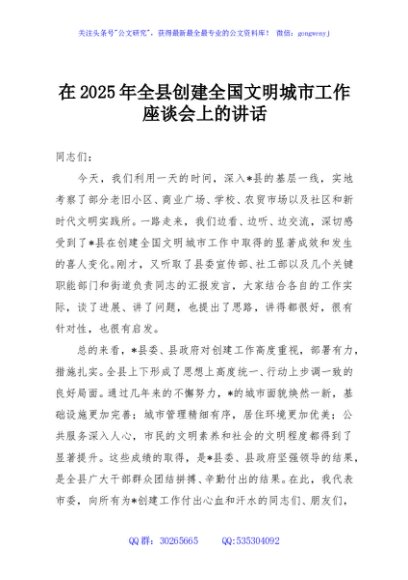 / 在2025年全县创建全国文明城市工作座谈会上的讲话