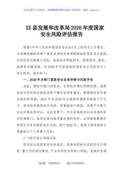 / XX县发展和改革局2026年度国家安全风险评估报告