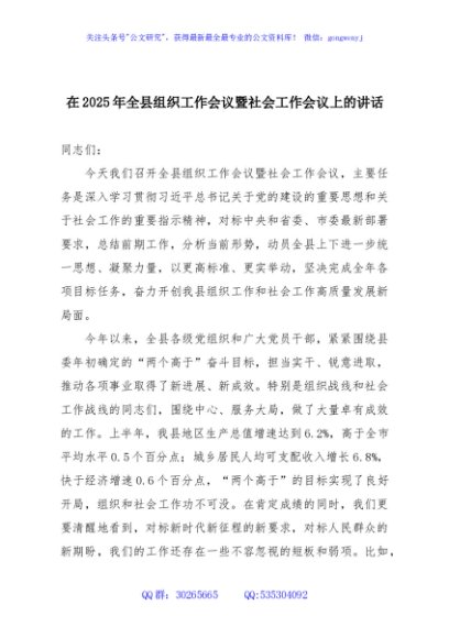 / 在2025年全县组织工作会议暨社会工作会议上的讲话