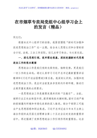 / 在市烟草专卖局党组中心组学习会上的发言(精品)