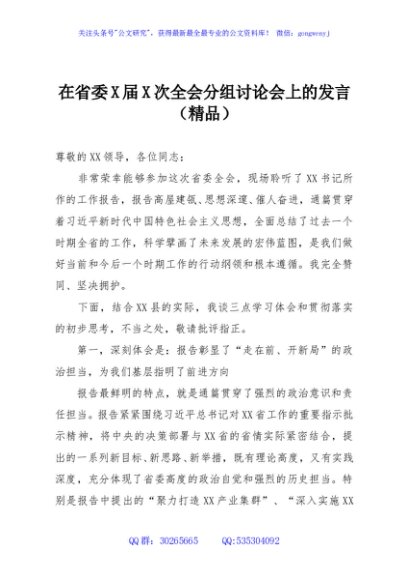 / 在省委X届X次全会分组讨论会上的发言(精品)