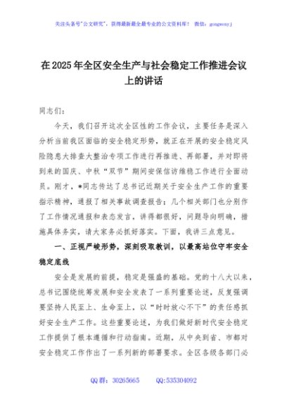 / 在2025年全区安全生产与社会稳定工作推进会议上的讲话