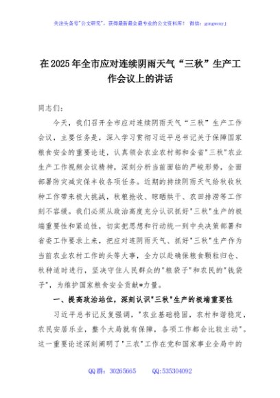 / 在2025年全市应对连续阴雨天气“三秋”生产工作会议上的讲话