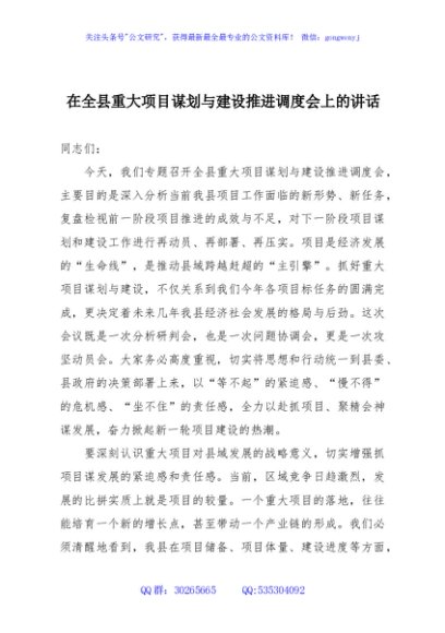 / 在全县重大项目谋划与建设推进调度会上的讲话