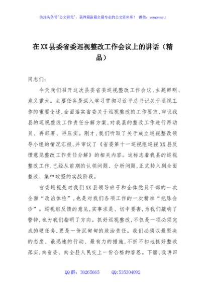 / 在XX县委省委巡视整改工作会议上的讲话(精品)