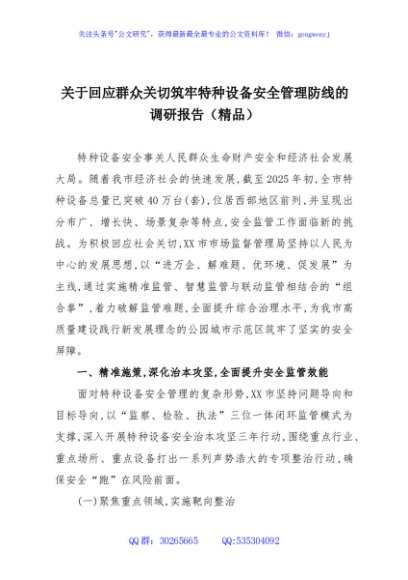 / 关于回应群众关切筑牢特种设备安全管理防线的调研报告(精品)