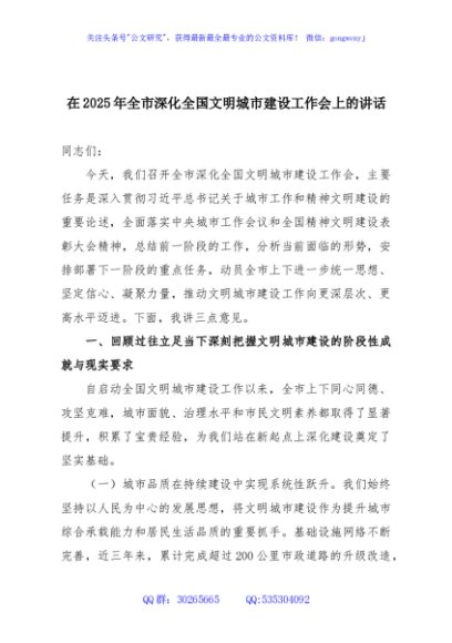 / 在2025年全市深化全国文明城市建设工作会上的讲话