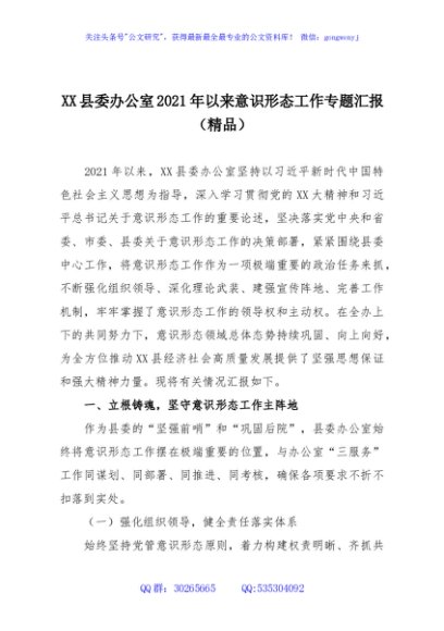 / XX县委办公室2021年以来意识形态工作专题汇报(精品)