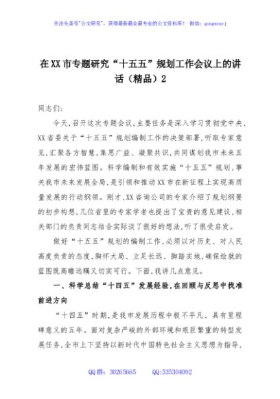 / 在XX市专题研究“十五五”规划工作会议上的讲话(精品)2