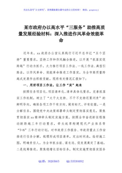 / 某市政府办以高水平“三服务”助推高质量发展经验材料:深入推进作风革命效能革命