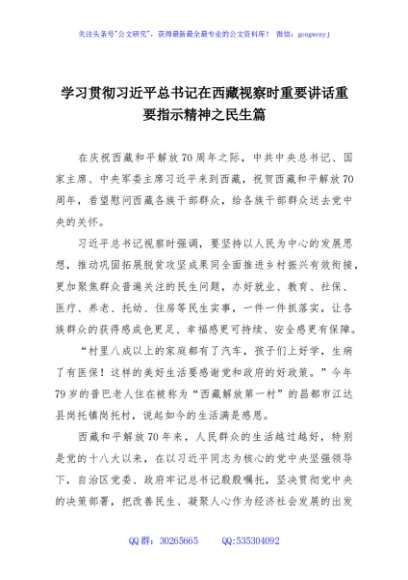 学习贯彻习近平总书记在西藏视察时重要讲话重要指示精神之民生篇
