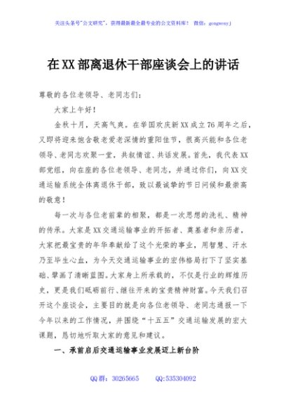 未生成预览图,长按二维码添加 在XX部离退休干部座谈会上的讲话 - 公文研究