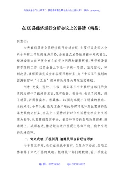 / 在XX县经济运行分析会议上的讲话(精品)