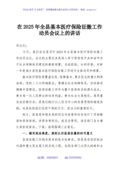 / 在2025年全县基本医疗保险征缴工作动员会议上的讲话