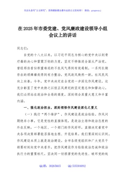 / 在2025年市委党建、党风廉政建设领导小组会议上的讲话