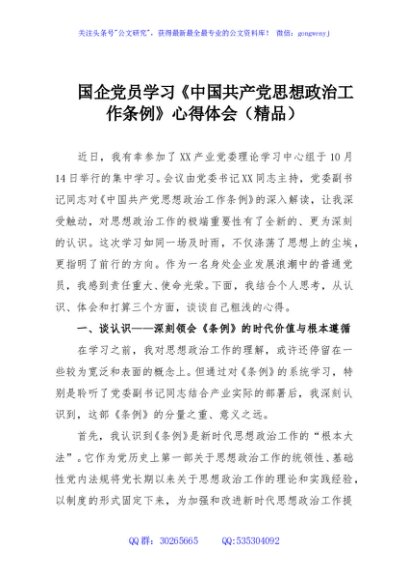 / 国企党员学习《中国共产党思想政治工作条例》心得体会(精品)