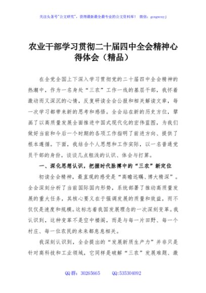 / 农业干部学习贯彻二十届四中全会精神心得体会(精品)
