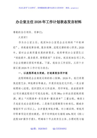/ 办公室主任2026年工作计划表态发言材料