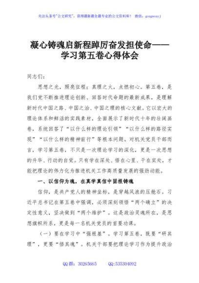 / 凝心铸魂启新程踔厉奋发担使命——学习第五卷心得体会