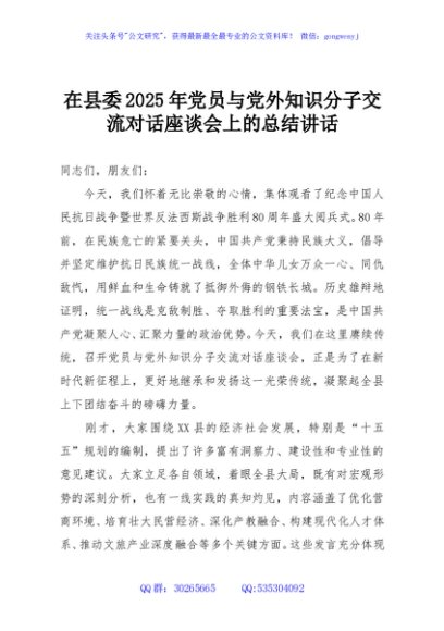 / 在县委2025年党员与党外知识分子交流对话座谈会上的总结讲话