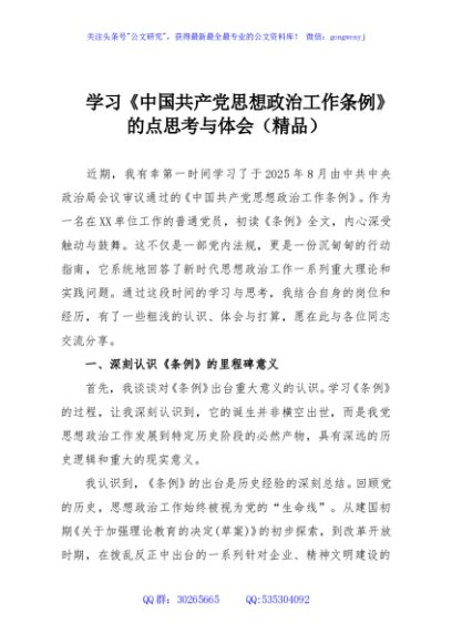 学习《中国共产党思想政治工作条例》的点思考与体会(精品)