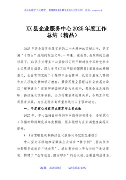 / XX县企业服务中心2025年度工作总结(精品)