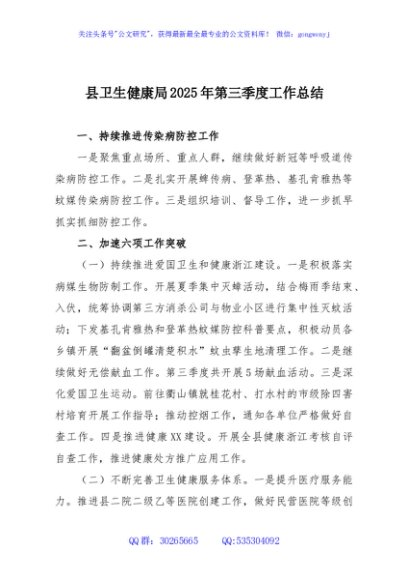 / 县卫生健康局2025年第三季度工作总结