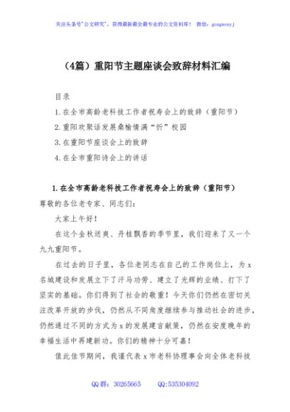 / (4篇)重阳节主题座谈会致辞材料汇编