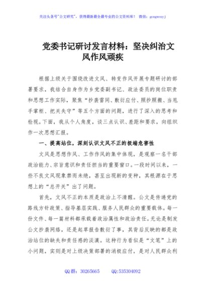/ 党委书记研讨发言材料:坚决纠治文风作风顽疾