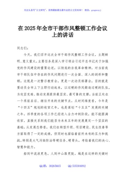 / 在2025年全市干部作风整顿工作会议上的讲话