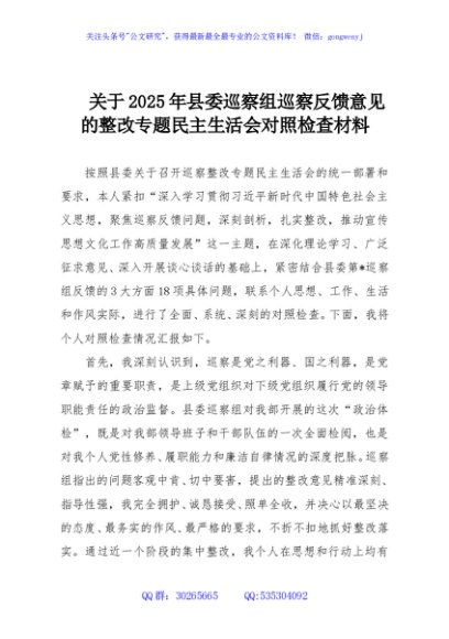 / 关于2025年县委巡察组巡察反馈意见的整改专题民主生活会对照检查材料