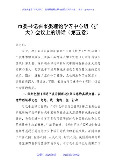 市委书记在市委理论学习中心组(扩大)会议上的讲话(第五卷)